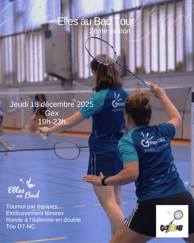 Si cette communication vous est destinée, c’est que vous êtes licenciées dans un club FFBAD de l’Ain avec un classement compris entre D7 et NC.